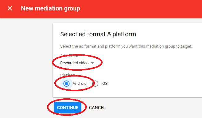 - Choose Mediation tab and press CREATE MEDIATION GROUP button.