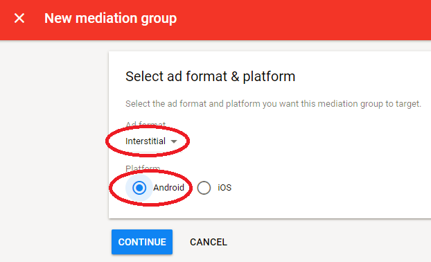 - Fill mediation group details and press ADD AD UNITS to connect your mediation group with the interstitial ad and interstitial video ad units.