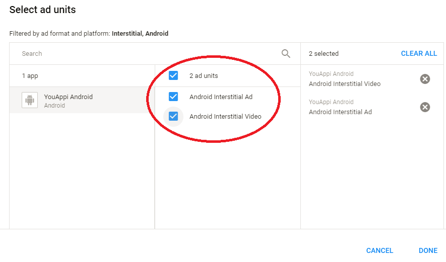 Create Mediation Group for YouAppi Interstitial Video and Interstitial Ad